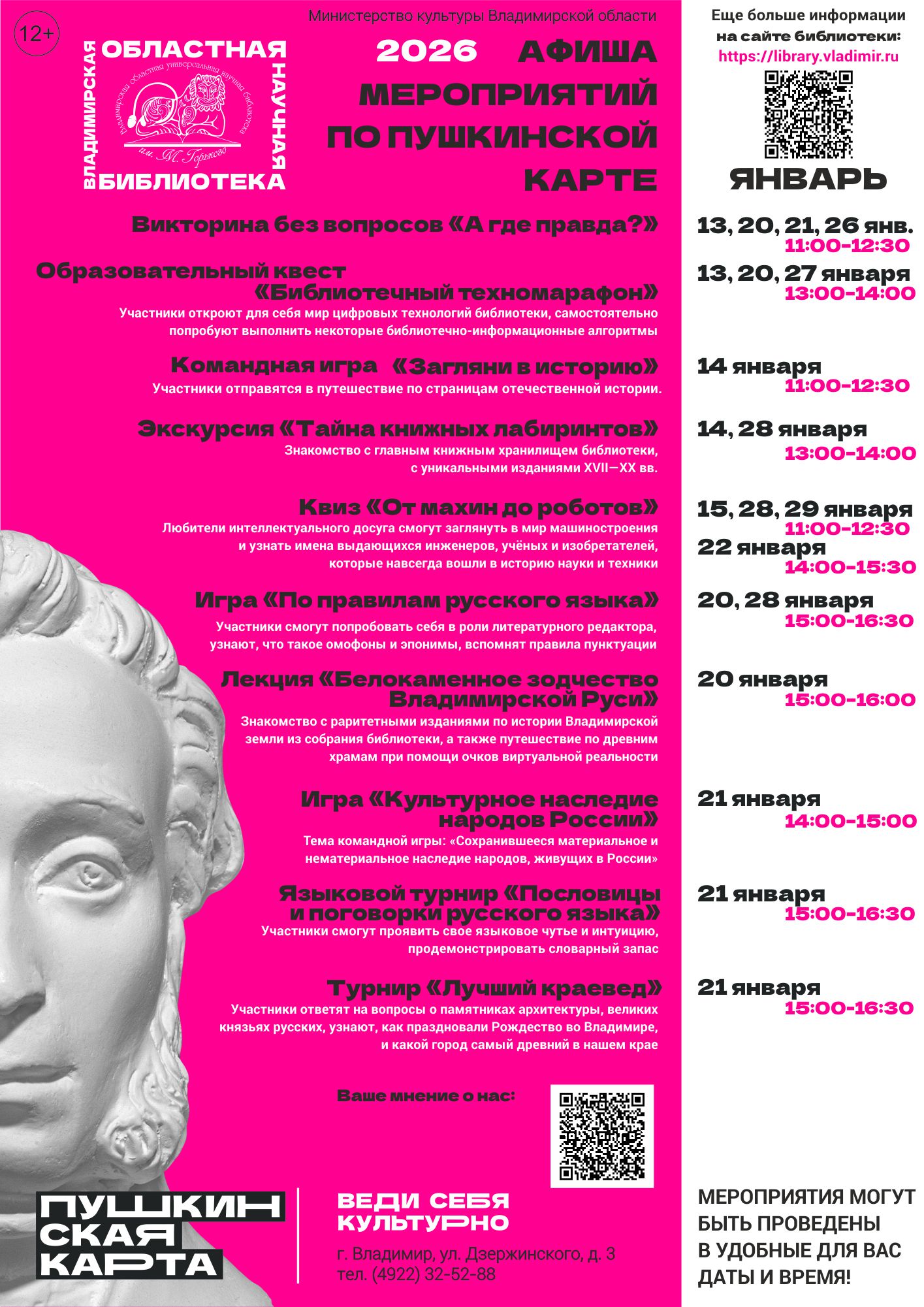 Пушкинская карта — это интеллектуальные игры, мастер-классы, экскурсии, краеведческие турниры. Мероприятия могут быть проведены в удобные для вас даты и время!