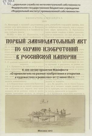 17 июня 1812 года императором Александром I был подписан Манифест «О привилегиях на разные изобретения и открытия в ремеслах и художествах», ставший по своей сути первым патентным законом в России.