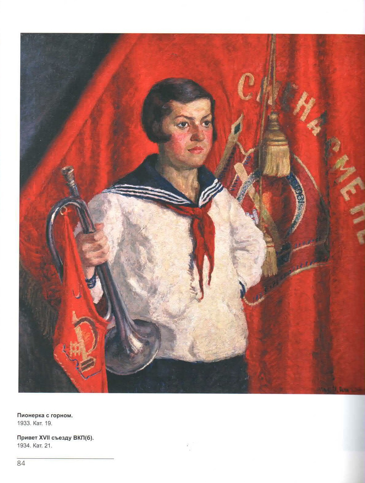 Ученик В. А. Серова и К. А. Коровина советский живописец Илья Иванович Машков (1881-1944) любил Крым, неоднократно работал в Гурзуфе и в каждый приезд посещал детскую здравницу. Эти поездки послужили основой для создания в 1933 г. портрета «Пионерки с горном».